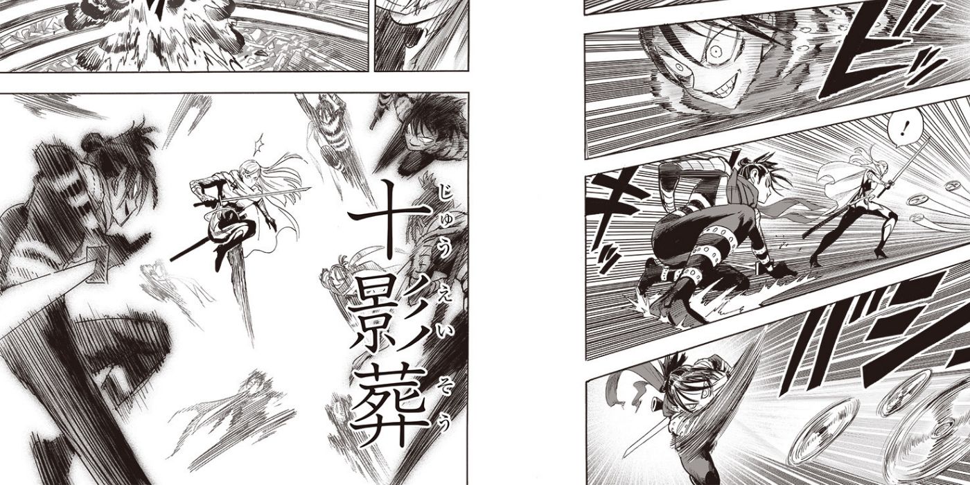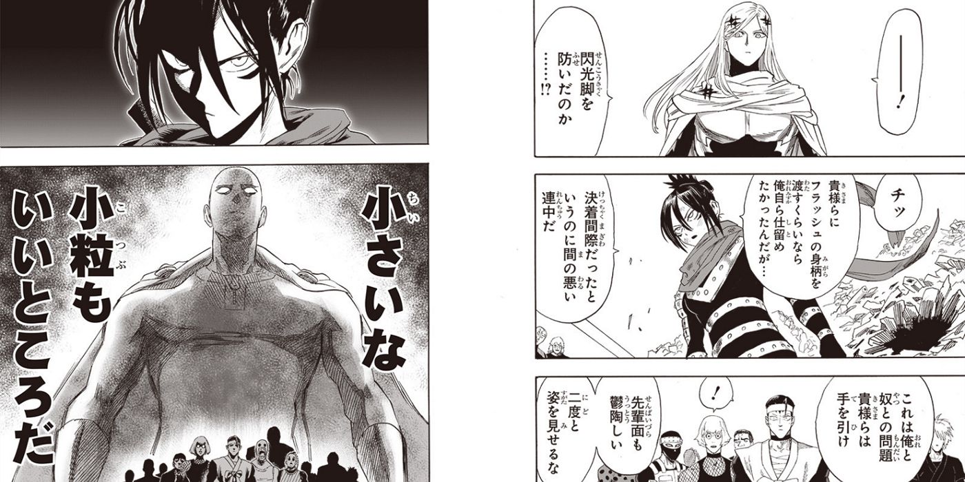 Cuando se enfrenta a una multitud de ninjas de élite altamente entrenados, Sonic se enfrenta a ellos, afirmando que su duelo con Flashy Flash reemplaza al de ellos y amenaza con luchar contra ellos también. Están sorprendidos por su audacia, pero luego se revela que Sonic está comparando su fuerza con la de Saitama, y ni siquiera comienza a estar a la altura. Saitama ha establecido un nuevo estándar sobre lo que es la verdadera fuerza de Sonic, un listón al que pretende aspirar y superar. Flashy Flash señala que Sonic debe haber entrenado mucho, y está claro en el contexto que se trataba de un entrenamiento para derrotar a Saitama.