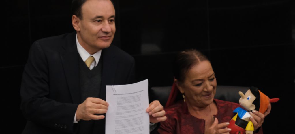 El peluche fue tomado y arrullado por la presidenta de la Comisión de Seguridad Pública, quien en plan mediador y ante la gritería de los panistas apuntó: “me gustó el pinocho para mi nieto. Ya se lo guardé”. (Con información de Ntmx)