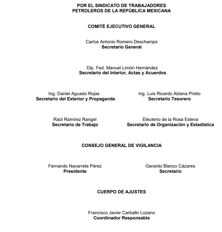 Desde el 30 de septiembre, Romero Deschamps iba a presentar su renuncia luego de que en julio operó para que apareciera el diputado del PRI, Manuel Limón -quien antes había sido su tesorero- como secretario del interior y con ello éste pudiera asumir las funciones de secretario general del STPRM. Así lo detalló la periodista Ana Lilia Pérez en #AristeguiEnVivo, donde presentó el referido contrato que muestra a Limón en una posición distinta a la que tenía anteriormente cuando era secretario tesorero, por lo que por cierto este personaje tiene conocimiento puntual del dinero que mueve el gremio petrolero que encabezó durante 26 años Deschamps, quien hizo de Pemex una “caja chica, con transferencias estratosféricas”.
