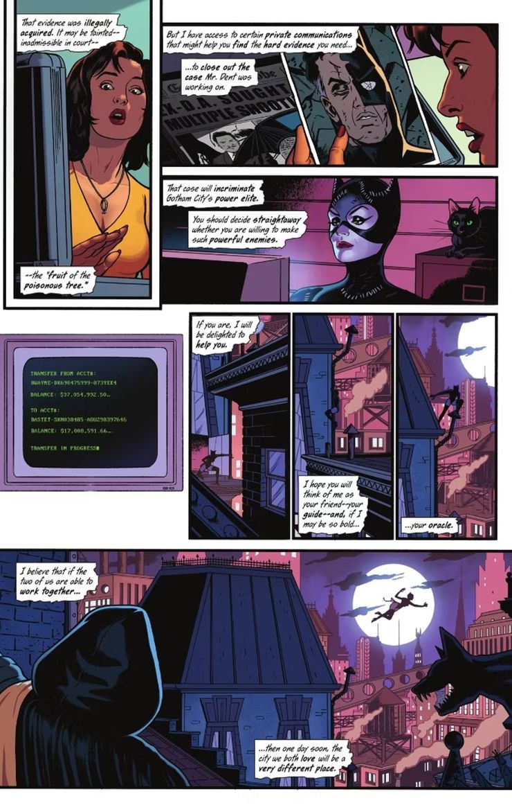 Más reciente, batman ’89 El número 6 de Sam Hamm y Joe Quinones termina con Catwoman contactando a Barbara Gordon (quien, en este universo, es la sargento a cargo del Departamento de Policía de Ciudad Gótica, así como la prometida de Harvey Dent antes de convertirse en Two-Face) para convertirse en “tu oráculo.” Ver con qué frecuencia el homónimo de Oracle se ha transmitido de una persona a otra no solo expone el manto como un héroe heredado inesperado, sino posiblemente como el más importante de DC.