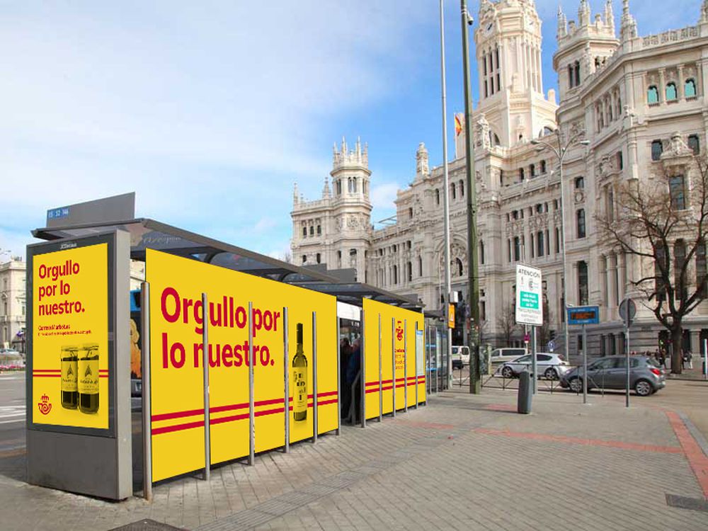 Pero eso no impedirá que recordemos la fecha y transmitamos su significado. El mensaje de Orgullo por lo nuestro estará presente en las marquesinas del Paseo de la Castellana de Madrid, donde habitualmente transcurre el desfile de la Fiesta Nacional, y en una gran lona de 38×24 metros sobre la confluencia de dos de las calles más emblemáticas de Madrid: Goya y Serrano.