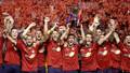 Una felicitación que se extendió a toda la plantilla al dar los jugadores la vuelta al campo entre vítores, confeti rojo, bufandas y banderas ondeando a su paso. Fueron varios los futbolistas que portaron la Copa por el terreno de juego.