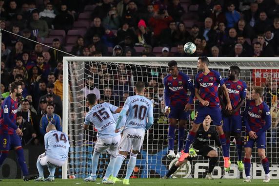 Olaza anotó su primer tanto con la camiseta del Celta en el Camp Nou
