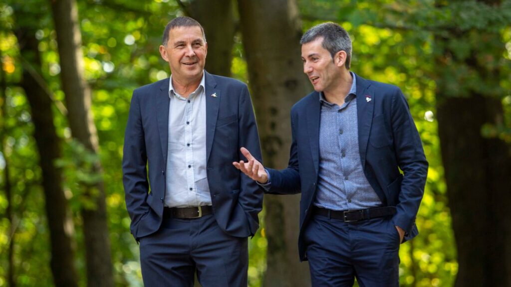 El coordinador general de EH Bildu, Arnaldo Otegi, y el secretario general de Sortu, Arkaitz Rodríguez, han reivindicado este lunes en el Palacio de Aiete de San Sebastián a “todas las víctimas”, pero han hecho “una mención especial” a las “víctimas de la violencia de ETA”. “Queremos trasladarles que sentimos su dolor y afirmamos que nunca debería haberse producido. A nadie puede satisfacer que aquello sucediera. No se debería haber prolongado tanto en el tiempo. Deberíamos haber llegado antes a Aiete [en referencia al anuncio del fin de ETA en 2011]. Desgraciadamente, el pasado no tiene remedio. Nada de lo que digamos puede deshacer el daño causado. Pero estamos convencidos de que es posible aliviarlo desde el respeto y la memoria. Sentimos enormemente su sufrimiento y nos comprometemos a mitigarlo”, han dicho ambos dirigentes, primero en euskera y luego en castellano.