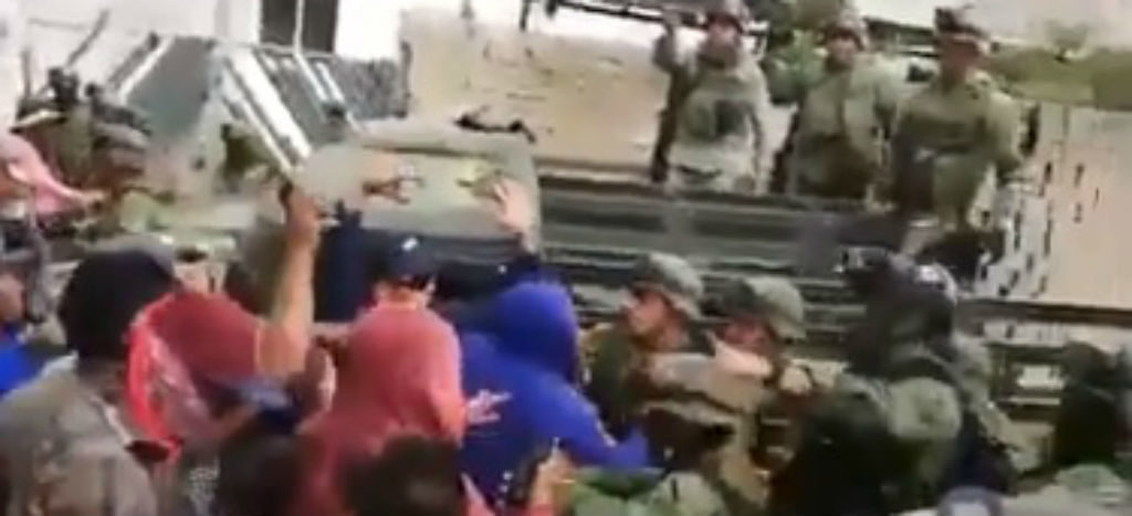 Cuando el grupo de pobladores llegó al punto donde 3 unidades del ejército le impidieron seguir avanzado, militares y civiles intercambio insultos; después, estos últimos pasaron a los palazos y comenzaron a aventar piedras, las cuales fueron regresadas por algunos soldados.