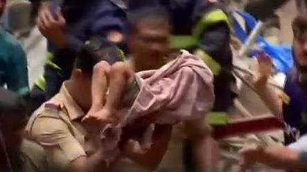 Los rescatistas desplazados a la zona del siniestro, en el barrio de Dongri, una atestada zona residencial de la ciudad, sacaron a tres personas con vida de los restos que fueron trasladadas a un hospital, dijo el bombero Ashok Talpade.