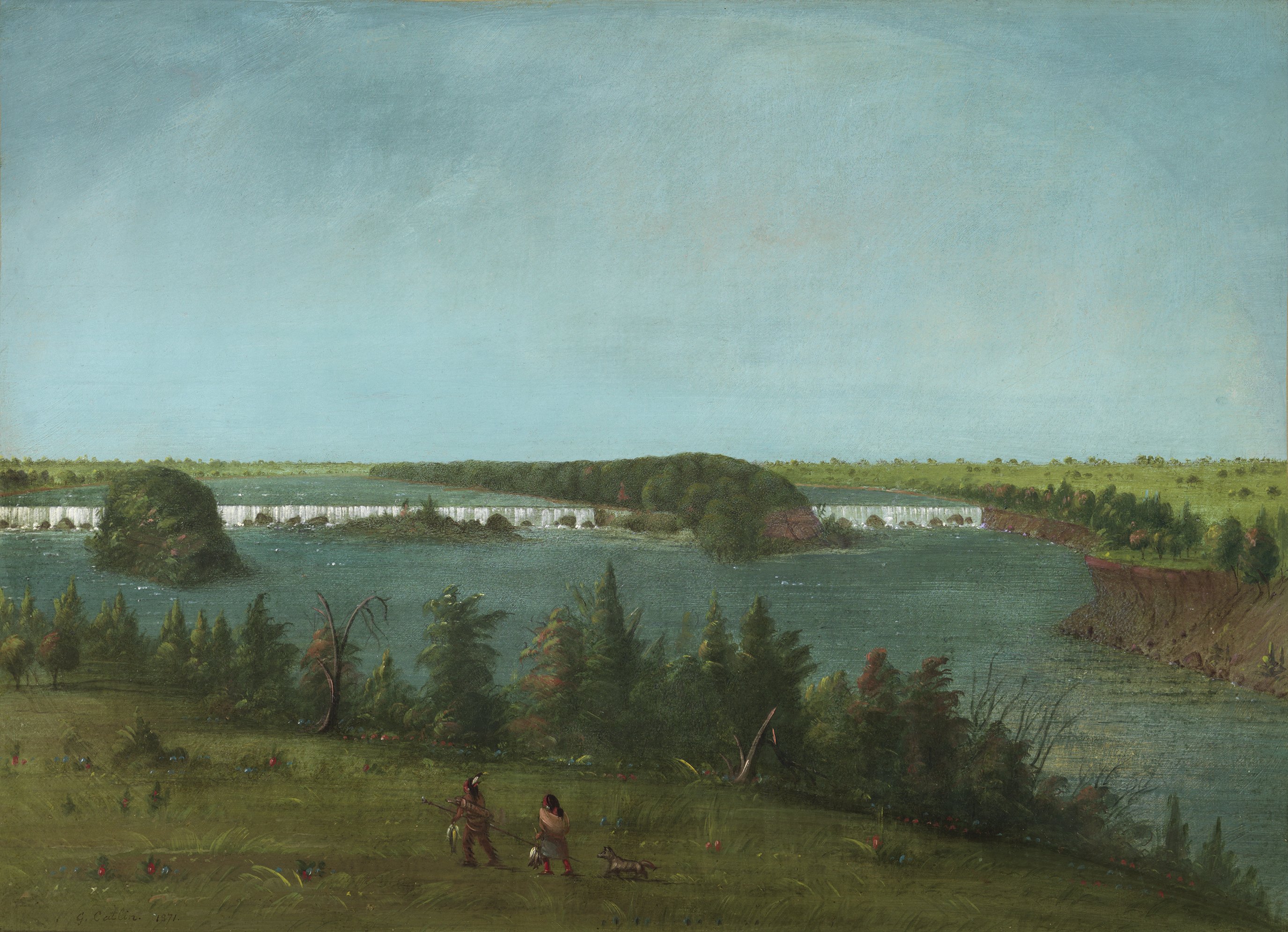El paisaje, igual en mi recuerdo que en estos cuadros que ahora veo en Madrid, era en gran medida una ficción. La pintura suprime tanto como muestra. El río primigenio que pintaba Frederic Church hacia los años setenta del siglo XIX estaba ya contaminado por los vertidos industriales de las fábricas de sus orillas. La neblina rojiza de las puestas de sol la ennegrecía el humo de las chimeneas de carbón. Los bosques estaban siendo talados. Los paisajes que asombraban a los viajeros europeos no eran los del Génesis, sino del Apocalipsis. Los bosques que parecían vírgenes habían alcanzado aquel espesor no porque nadie hubiera habitado nunca en ellos, sino porque sus pobladores habían desaparecido. La soledad romántica de los paisajes de la pintura americana es el escenario póstumo de un gran exterminio. En un cuadro de George Catlin de 1871 se ven las cataratas formidables de San Antonio en el río Misisipi desde un punto de vista elevado para dar mejor la impresión de la amplitud del espacio: abajo, diminutas, hay dos figuras, un hombre y una mujer indios, seguidos por un perro. En el momento en que el cuadro se pintó, incluso esa presencia humana mínima era ya un recuerdo de otra época. Las epidemias, el acoso, la guerra, la política de expulsión y exterminio están inscritos como cicatrices invisibles en la belleza de un paisaje que parece intocado.