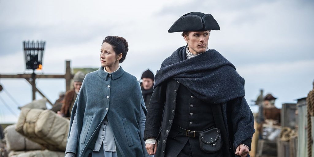 El atuendo de Jamie Fraser en la serie de televisión fue diseñado para mantenerse fiel a los libros de Diana Gabaldon. Esto probablemente complacería a los lectores, que se enamoraron por primera vez de Jamie y su sentido de la moda a través del estampado en blanco y negro.