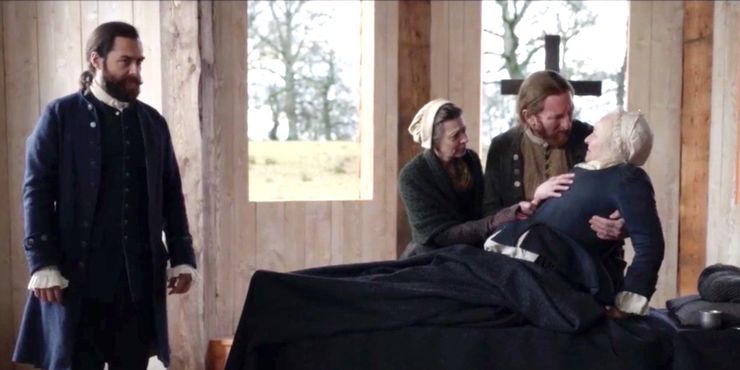 Cuando un colono muere repentinamente en forastero temporada 6, episodio 2, Christie organiza un funeral en la nueva iglesia, y se ve el cuerpo del difunto con pan sobre él. Pronto, llega un hombre: el devorador de pecados, que come el pan, se le paga y luego se va. Aunque es una escena corta, el ritual representa el contraste y la creciente tensión entre la vida de Jamie como masón en el nuevo mundo y el aferramiento de Christie a las tradiciones de su tierra natal. Además, la presencia del devorador de pecados en forastero El episodio 2 de la temporada 6 podría indicar más problemas para Claire.