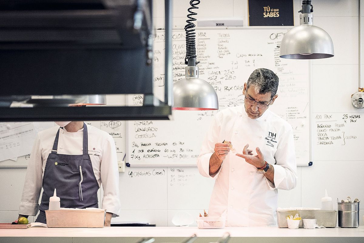 Hijo de militar, Roncero le ha demostrado a su padre que se puede llevar otro uniforme con orgullo. “No te quemes las pestañas”, cuenta que le dijo cuando se enteró de que quería estudiar hostelería. Para el madrileño, perseguir “una vida más extraordinaria”, como reza el lema de la campaña de Jaguar de la que es imagen, pasaba indiscutiblemente por abrocharse la chaqueta de chef y remangarse para concebir desde el considerado restaurante más caro del mundo —Sublimotion, en Ibiza, a unos 2.000 euros el cubierto— hasta una marca de comida a domicilio y una escuela de cocina. A la pregunta sobre cómo consigue manejar tal entramado de negocios responde interrogando a su personal de cocina. La mayoría lleva a su lado más de 10 años. Sus jefes de cocina, concreta, entre 20 y 25. “Creo que fue a [Joël] Robuchon a quien le preguntaron: ‘Y cuándo tú no estás, ¿quién cocina?’. Y dijo: ‘El de siempre’. Yo no soy una máquina y lo que hago es montar equipos que tengan mis mismos valores, y si pueden ser mejores que yo, mejor aún”. No le hizo falta la llegada de una pandemia para apostar por negocios paralelos que le permitan “contar con ingresos que el restaurante gastronómico no da”.