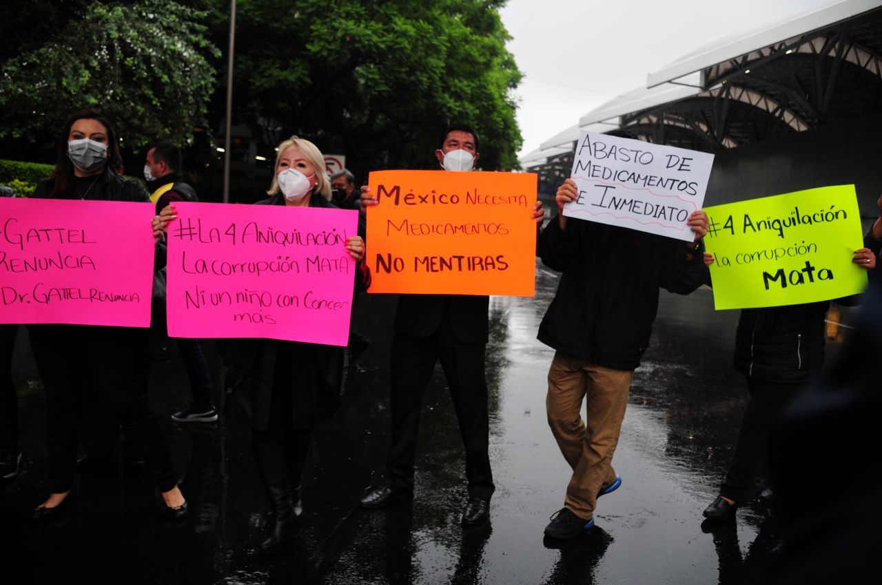 Los manifestantes exigen la entrega de medicamentos oncológicos para el tratamiento de sus hijos y la renuncia del subsecretario de Salud, Hugo López-Gatell.