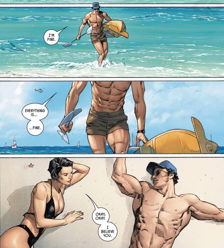 No estoy aquí sólo para quejarme. Obviamente (espero), no tengo ninguna animosidad hacia ningún equipo creativo que utilice este cliché como una abreviatura de la dedicación de Batman. En cada caso individual, que Batman se olvide de comer puede tener sentido: este caso es tan difícil, tan desafiante para la mente y el cuerpo del Caballero Oscuro, que no tiene tiempo para ningún tipo de distracción (incluso decirle a Nightwing que lo ama). Sin embargo, La vida de Batman es bastante justo casos que son tan desafiantes para la mente y el cuerpo del Caballero Oscuro que no tiene tiempo para ningún tipo de distracción (incluso decirle a Nightwing que lo ama) y, en conjunto, es extraño, fuera de lugar y perezoso que Batman se niegue a comer.