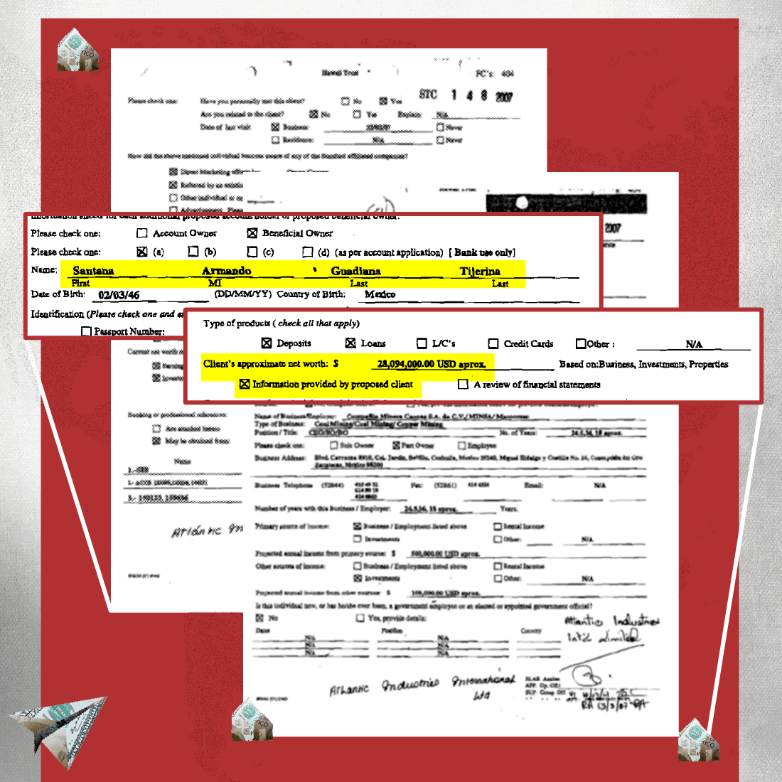 Al momento de registrar su offshore, Guadiana dijo que su ingreso anual rondaba los 600 mil dólares y que su patrimonio superaba los 28 millones dólares distribuidos en empresas mineras, inversiones y propiedades. Designó a sus cuatro hijos como beneficiarios, según los expedientes del despacho.