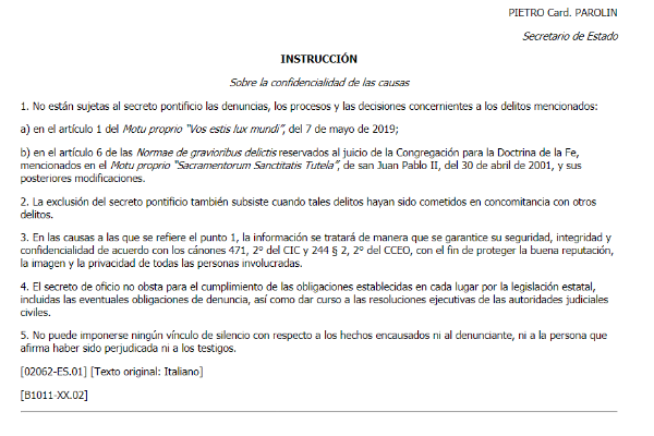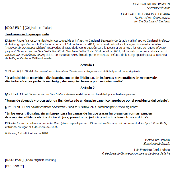 A partir de esta nueva norma, las autoridades eclesiásticas que tengan conocimiento de estos casos estarán obligadas a agilizar los procesos de denuncia y comunicarlas de inmediato a las autoridades civiles.