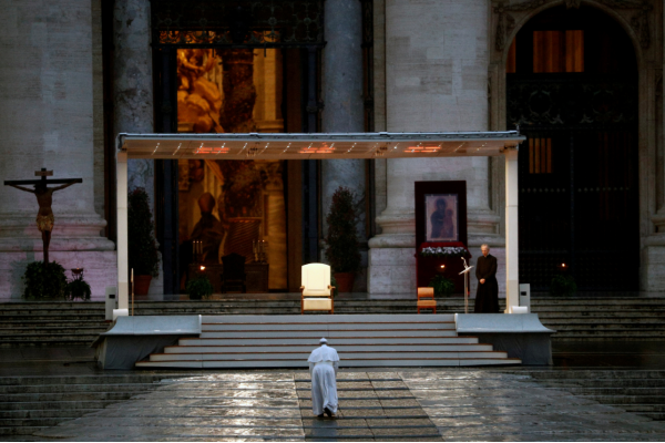El Vaticano calificó al servicio como “Una oración extraordinaria en tiempos de pandemia”, un eco sombrío de un anuncio de funcionarios italianos minutos antes de que el número de muertos por coronavirus en el país había aumentado por encima de los 9 mil.