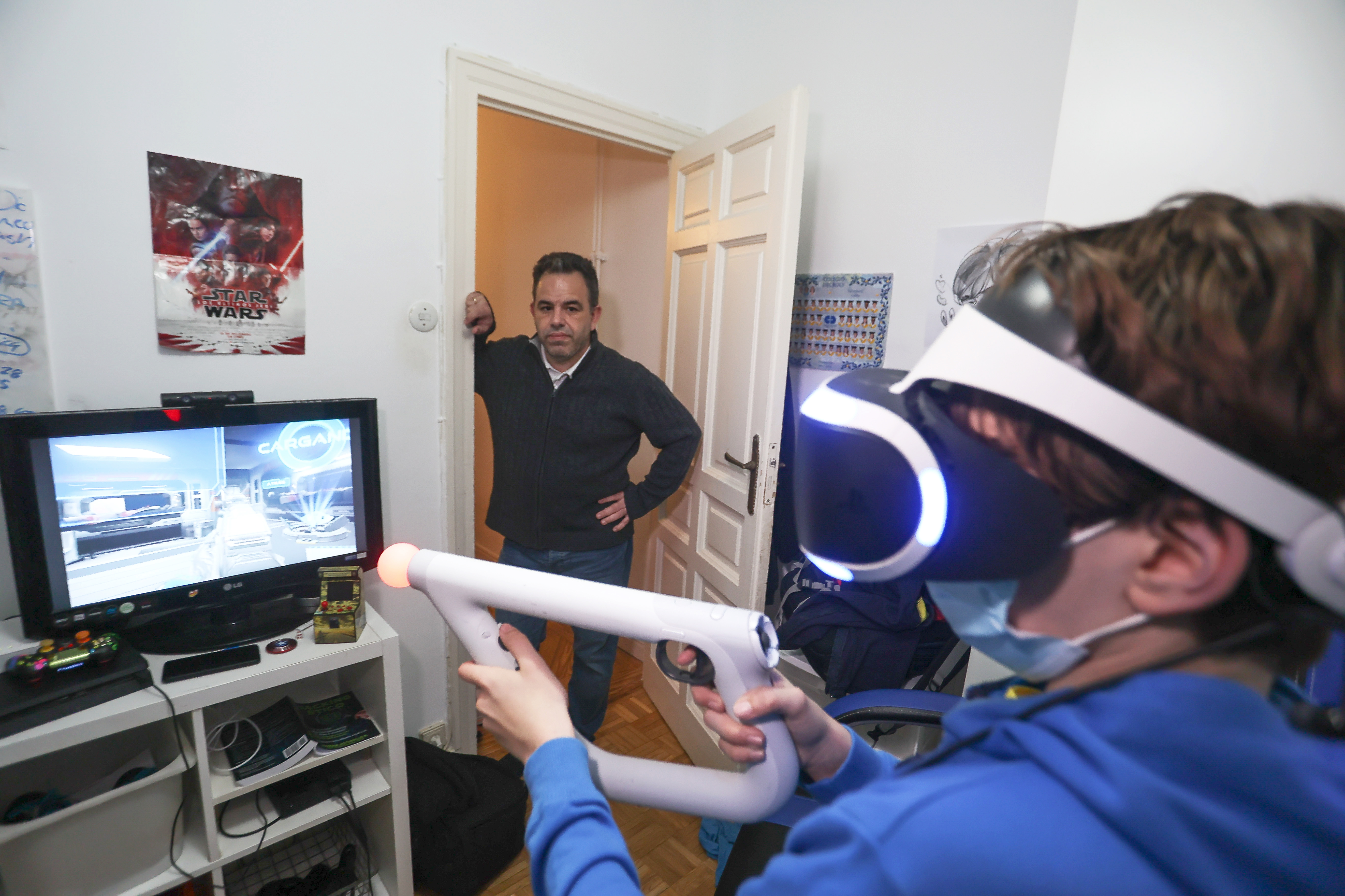 Juancho Andrés mira cómo su hijo Bruno juega en su habitación.KIKE PARA