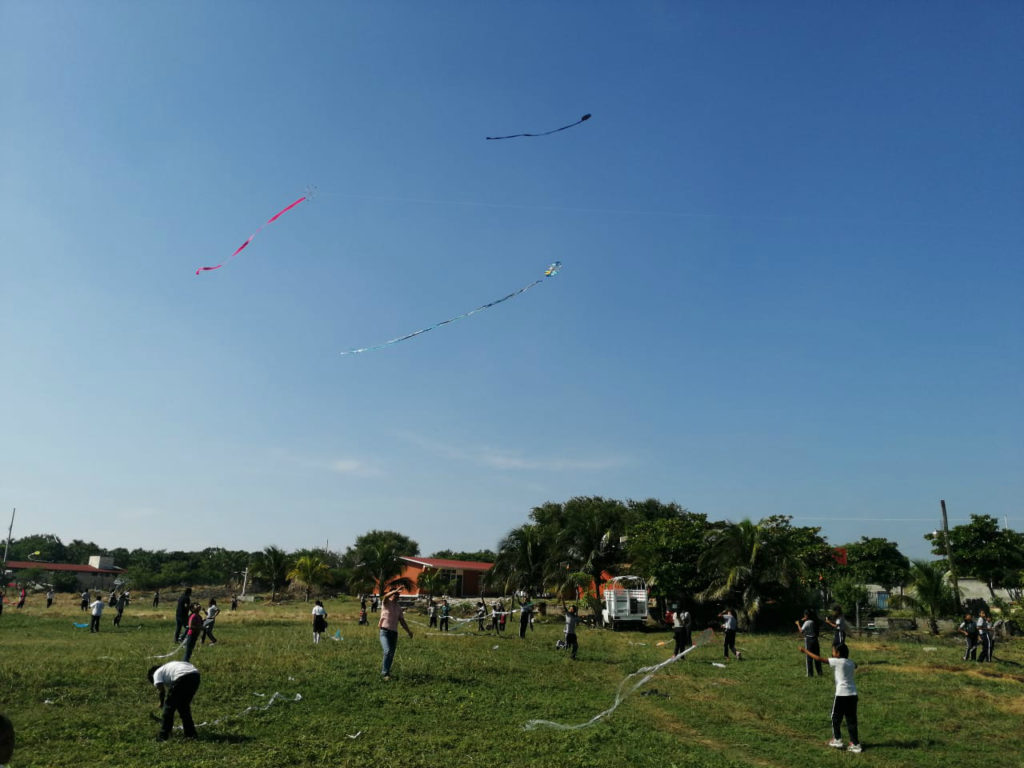 En la escuela primaria bilingüe “General Anaya”, los más de 160 estudiantes también realizaron volaron papalotes y con la ayuda de sus maestras y maestros los elevaron a distancias que apenas y se observaba un punto en el espacio.