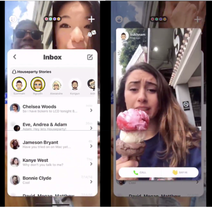 La "compañía de cámaras" corrigió el rumbo y recuperó el control de su destino esta semana en su primera Snap Partner Summit en su ciudad natal de Los Ángeles. Ahora es una camara plataforma gracias a Snap Kit. Su nuevo kit de historia implantará las Historias de Snapchat en otras aplicaciones más adelante este año. Pueden mostrar un carrusel más tradicional de las historias de tus amigos, o unirlas a su aplicación en un formato personalizado. El carrusel de Historias de Houseparty comparte lo que tus amigos están haciendo fuera de la aplicación de chat de grupo. Tinder te permitirá mostrar tu historia de Snapchat junto con tus fotos para seducir posibles coincidencias. Pero la cámara permanece dentro de Snapchat, con nuevas opciones para compartir con estas Historias de aplicaciones.