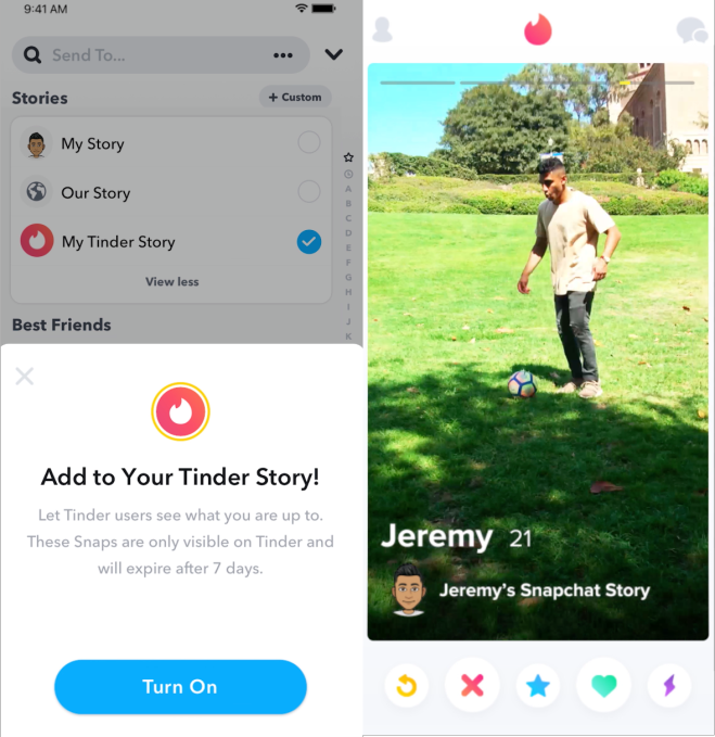 Tinder te permite usar las Historias de Snapchat como fotos de perfil