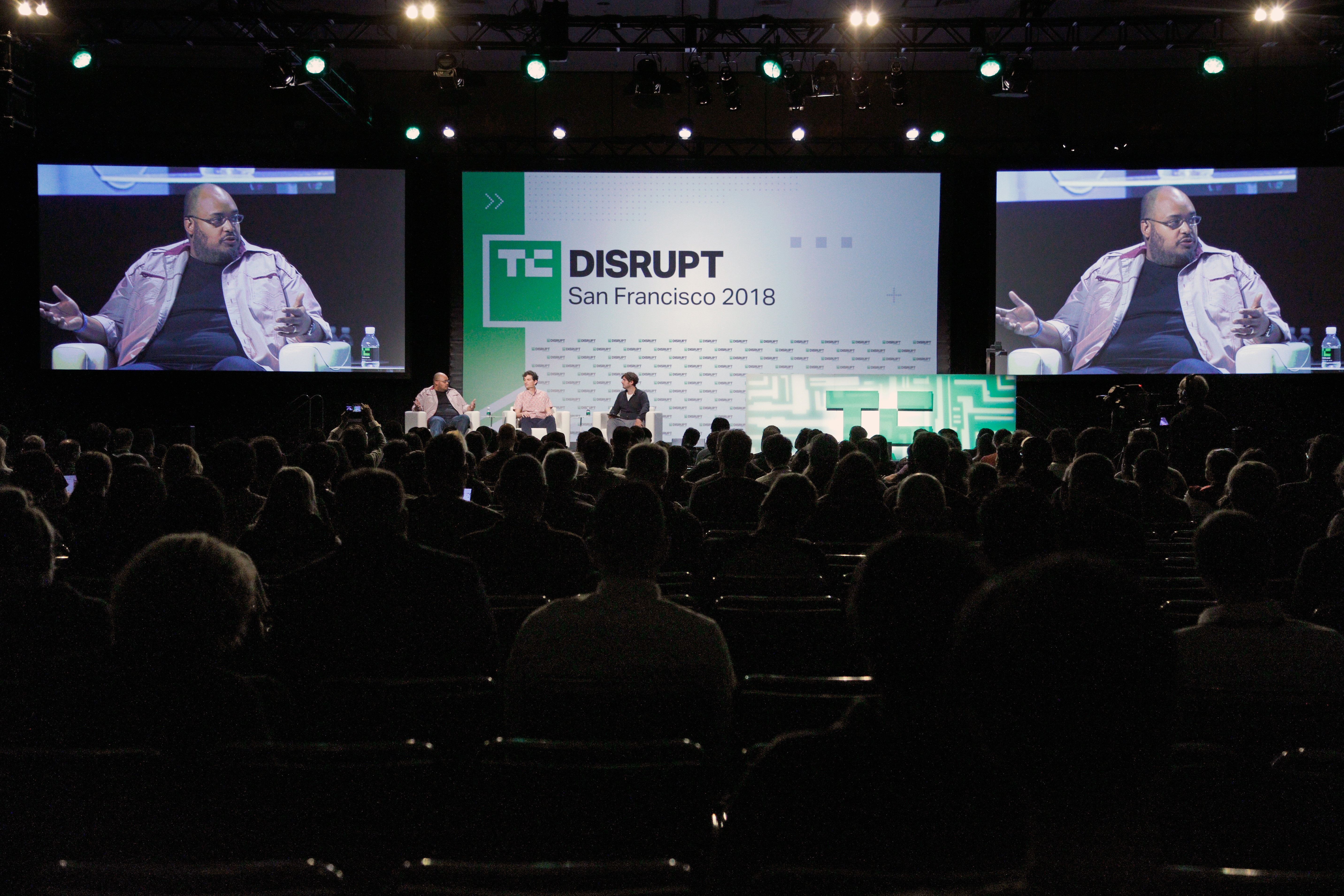 Los socios de Y Combinator, Michael Seibel y Dalton Caldwell, y el moderador Josh Constine, hablan en el escenario durante TechCrunch Disrupt SF 2018. (Foto de Kimberly White / Getty Images)