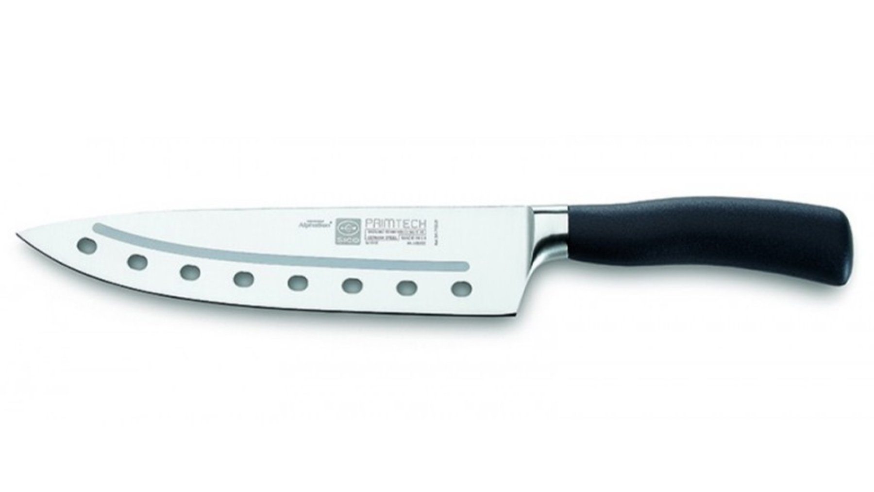Los agujeros que hay repartidos por la hoja ayudan a que los alimentos no se queden pegados ya que circula el aire entre la hoja y al alimento, lo que provoca que se despegue con más facilidad. Los agujeros no afectan a la estética del alimento que vas a cortar, que se presentará perfecto en el plato, siempre y cuando el cuchillo esté bien afilado.