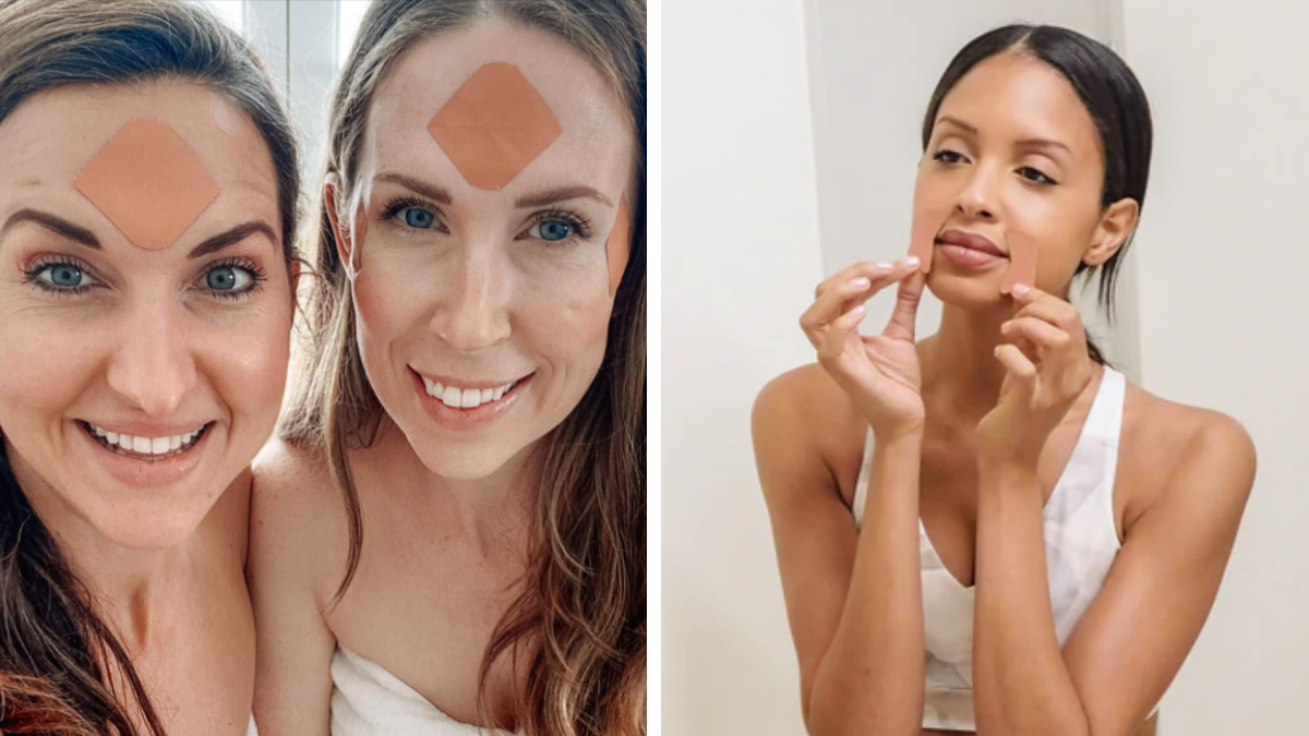 Dos ejemplos de las zonas en las que pueden colocarse estos parches para reducir las arrugas. Frownies.