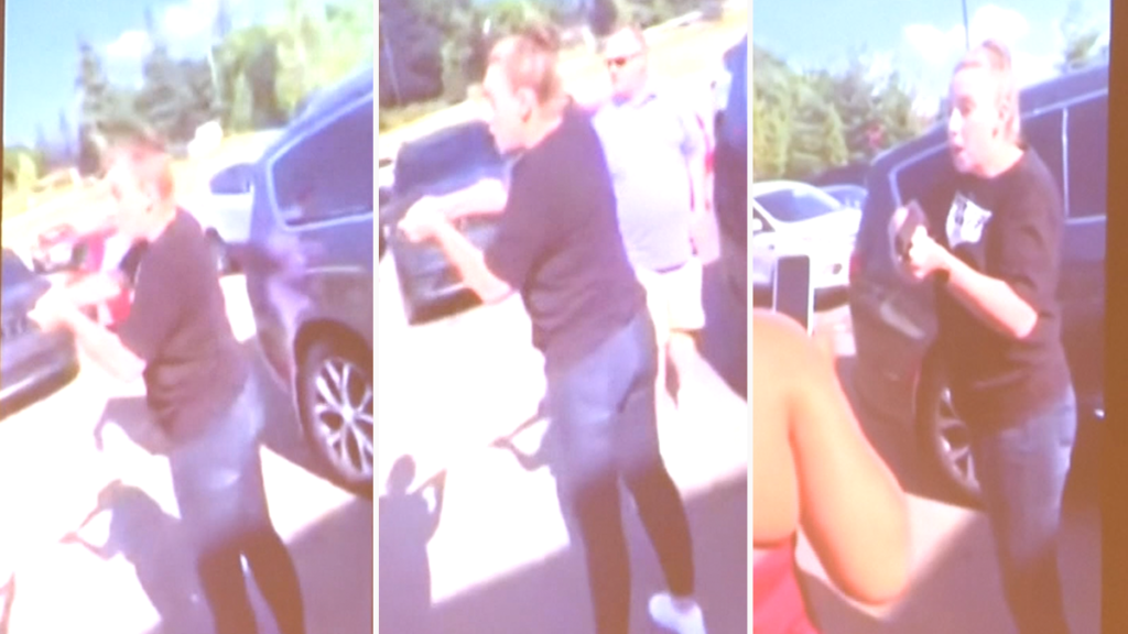 En un video del teléfono se observa el altercado frente a un restaurante Chipotle en el municipio de Orión, a unas 40 millas al noroeste de Detroit. Se puede ver a Jillian Wuestenberg afuera de su vehículo gritando: “¡Aléjate! ¡Aléjate!” mientras apunta una pistola. Luego regresa a su vehículo, mientras su esposo conduce.