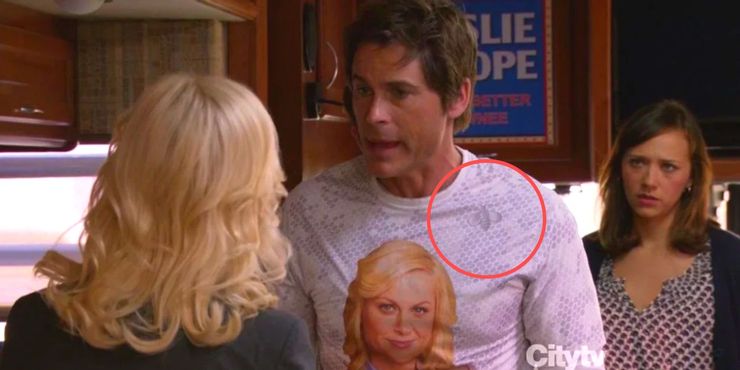 Cuando Chris le presentó a Bumbleflex a Leslie, había un pequeño ícono de una abeja en su camisa. Temporadas más tarde, un Redditor notó que todavía usaba Bumbleflex. Escribieron: “¡La camisa de Leslie de Chris está hecha de Bumbleflex! ¡Los detalles de este programa simplemente me dejan boquiabierto!”. FormerTaterTot también vio otra camiseta Bumbleflex en episodios posteriores.