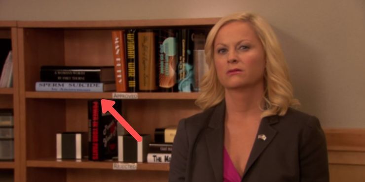 Ron y Tammy II tuvieron algunos de los mejores episodios. Su relación era tóxica, pero al mismo tiempo, era imposible mirar hacia otro lado. En un episodio, Leslie pasa por la oficina de Tammy en la biblioteca pública. Detrás de ella, Ballofconciousness notó la interesante colección de libros de Tammy.