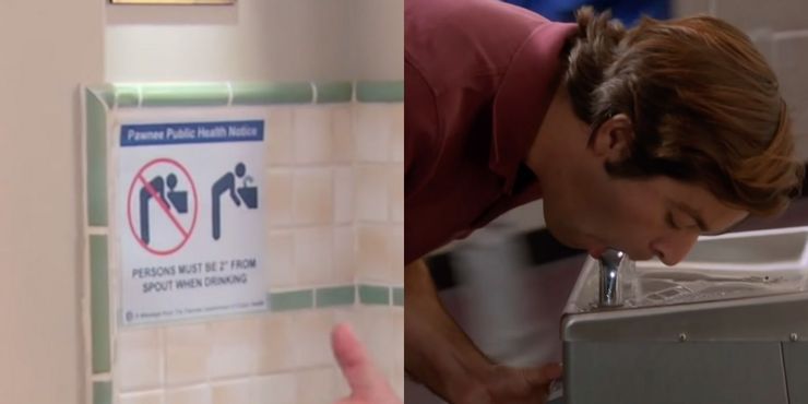 Curiosamente, lord_voldything notó un detalle de devolución de llamada dos temporadas después. En la sexta temporada, hay un letrero con el comportamiento adecuado de la fuente de agua sobre la fuente. El Redditor escribió: “Desde Parques y Rec. un letrero sobre una fuente de agua les dice a las personas que estén a 2 pulgadas de distancia, haciendo referencia a la trama de S4E17″. Este fue un detalle increíble detectado.