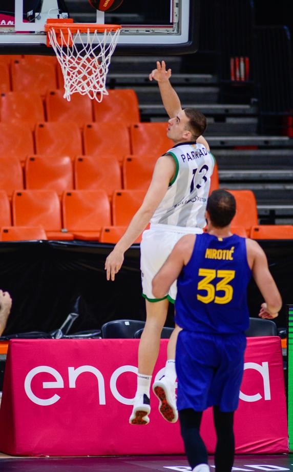 Parra, el canterano verdinegro número 122 que debuta en la liga española, jugó de titular ante el Barça, y Parrado tuvo un gran debut en los casi cinco minutos que estuvo en pista, anotando una canasta de dos y un triple tras burlar la defensa de Nikola Mirotic.