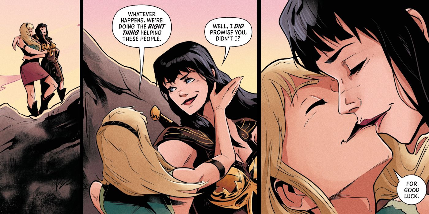 la serie de cómics destaca el romance sostenible y enriquecedor entre Xena y Gabrielle; Más que validar finalmente años de especulaciones, los convierte en una descripción positiva del romance queer.