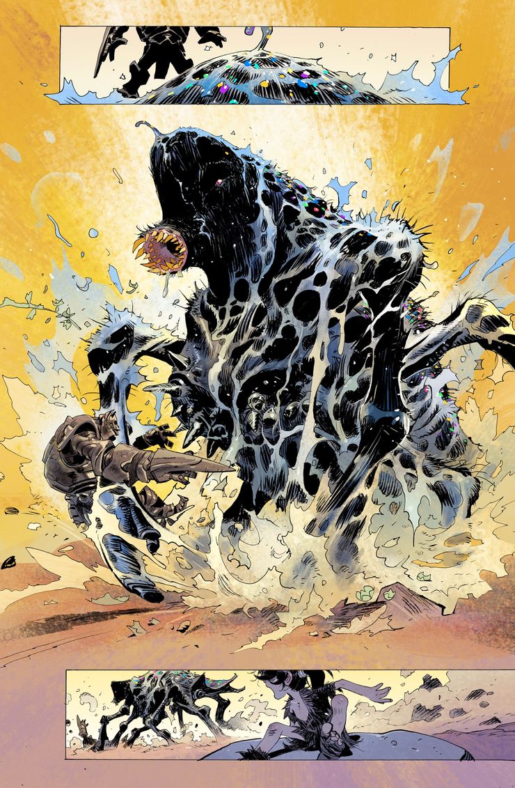 Esta última secuencia dentro de la vista previa destaca los monstruos dentro de la serie de Image Comics. Sobre ellos, Spurrier elogia las habilidades artísticas de Matías Bergara: