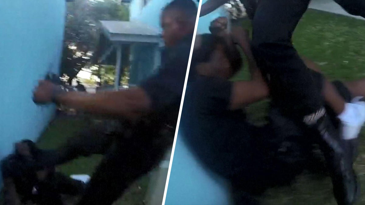 El video muestra a oficiales del Departamento de Policía de Miami persiguiendo a un sospechoso de robo; al alcanzarlo, le patean la cara y lo golpean, y según nos dijo su abogado, el video que salió a la luz muestra que su cliente se había rendido y tenía las manos arriba.
