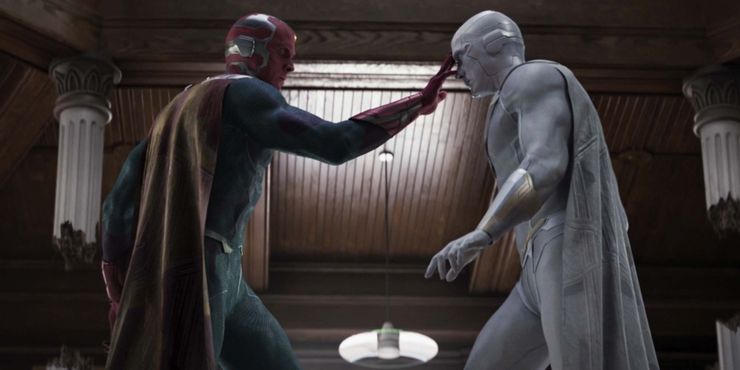 En Los Vengadores: La era de Ultron, Tony Stark (Robert Downey Jr.) y Bruce Banner (Mark Ruffalo) cargaron los restos del AIJARVIS de Stark para evitar que Ultron (James Spader) concibiera la Gema de la Mente, creando el sintezoide titular hecho de vibranio. En vengadores: guerra infinita, Vision había cultivado momentáneamente una relación romántica con Wanda Maximoff cuando Thanos (Josh Brolin) había arrancado la Gema de la Mente de la cabeza de Vision, drenando toda su fuerza vital. En Wanda VisionWanda manipuló la realidad para traer de vuelta a Vision usando magia del caos, mientras que SWORD había resucitado el cuerpo original de Vision para utilizarlo como un arma viviente, conocida como White Vision.