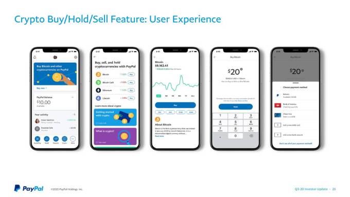 Esto también incluye los planes de PayPal para las criptomonedas, anunciados a finales de octubre. La compañía apunta a respaldar Bitcoin, Ethereum, Bitcoin Cash y Litecoin al principio, inicialmente en los EE. UU.