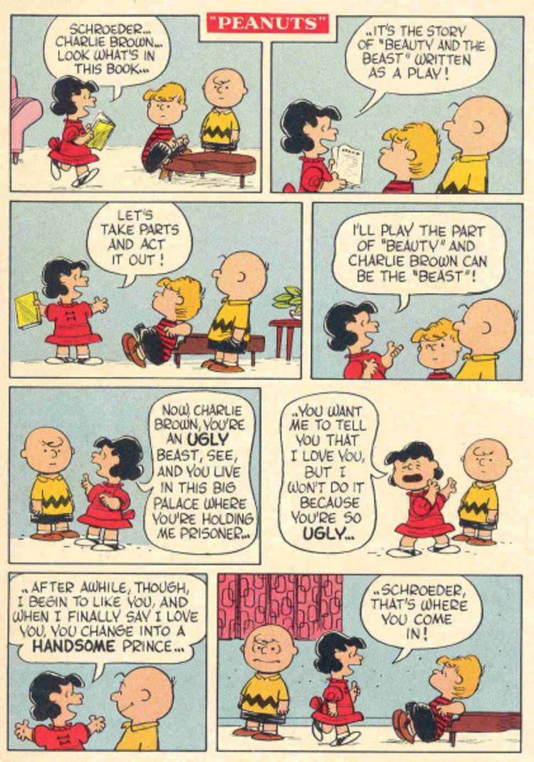 Lucy realmente le entiende a Charlie Brown que la Bestia es fea y agrega insulto a la herida al decir que cuando la Bestia se convierta en un apuesto príncipe, el papel pasará a su amor platónico, Schroeder. Si hay algo que Lucy va a hacer es insultar a Charlie Brown sin motivo alguno.