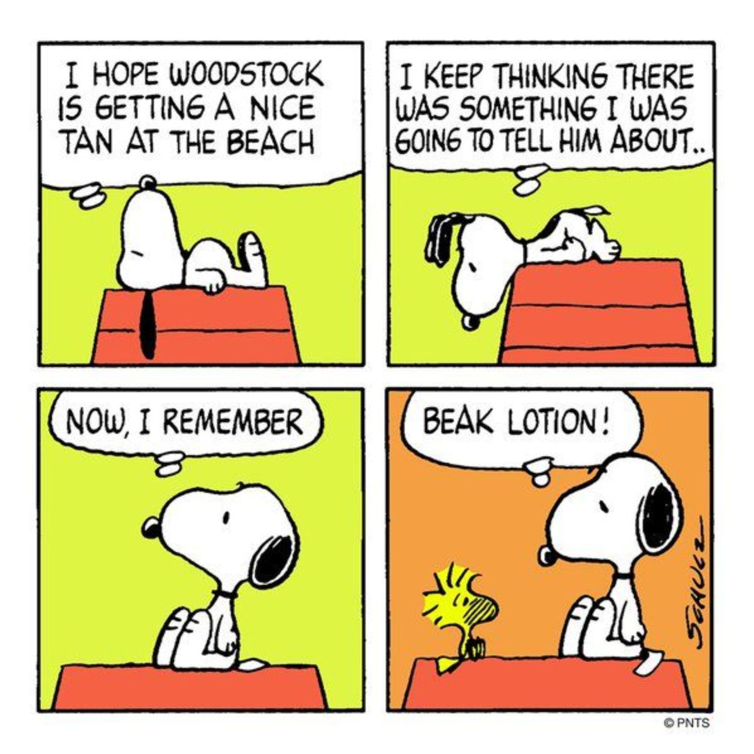 Un amigo de primer nivel nunca quiere ver a su amigo pasar por ningún dolor. Como lo demuestra este Miseria strip, Snoopy es uno de esos amigos. En la tira, Snoopy cuida de su amigo Woodstock y no quiere que experimente ninguna dolorosa quemadura en el pico. En consecuencia, Snoopy le recuerda a su amigo que se ponga loción para el pico.