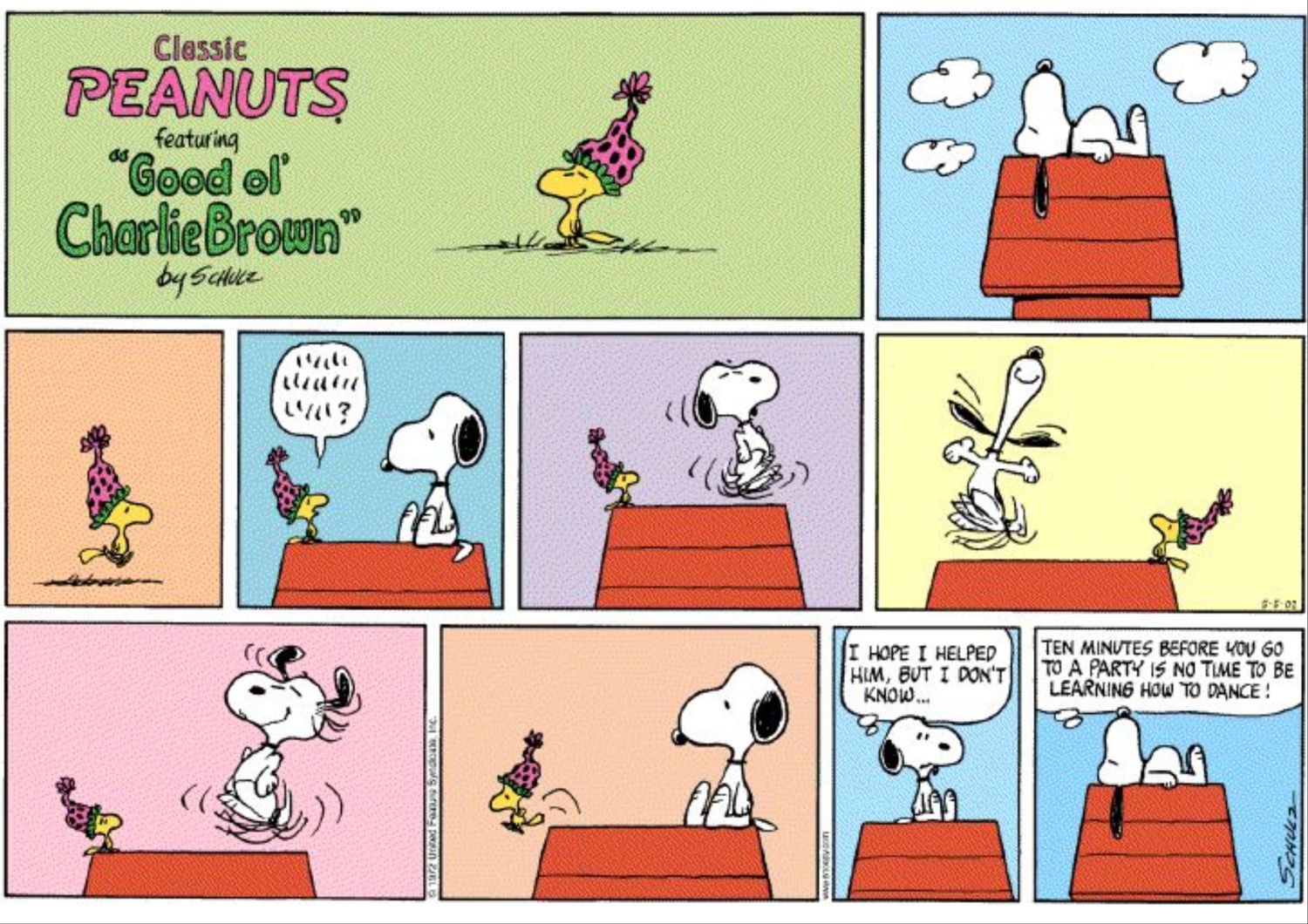 Es conmovedor ver a Woodstock recurrir a Snoopy cada vez que necesita ayuda o consejo. Es aún más conmovedor ver al típicamente holgazán Snoopy poner mucho esfuerzo en ayudar a su amigo. Nadie sabe si Woodstock impresionará a alguien en su fiesta con su baile, pero al menos él y su mejor amigo se lo pasan genial mientras tanto.