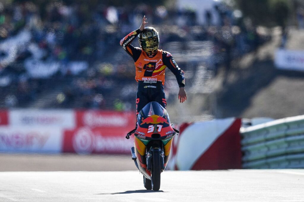 “Me he pasado la vuelta de honor llorando. Hace menos de un año me quedé sin equipo. Y no sé qué decir más que agradecer a Aki Ajo, Red Bull y a KTM que confiaran en ese niño que parecía que nunca iba a llegar. No me han dado un equipo, me han dado una familia. Nunca han perdido la sonrisa. Y ha terminado un año duro, después del verano di el estirón y me costaba mucho aguantar bien físicamente. Las últimas carreras me han costado. No es normal llegar al Mundial y hacer esto”, declaró a DAZN, entre lágrimas tras bajar del podio.