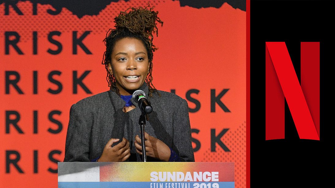 La escritora y directora Tayarisha Poe habla en el escenario en el estreno de “Selah And The Spades” – Foto de Sonia Recchia/Getty Images
