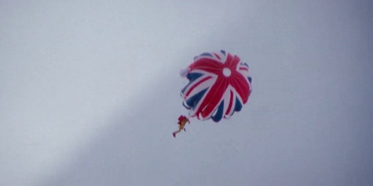Fácilmente, el abierto frío más espectacular de la era de Moore, y tal vez de toda la franquicia, es el salto en paracaídas de Union Jack desde El espía que me amó. Este salto es una de las mayores acrobacias jamás capturadas en una película, y configura una de las mejores salidas cinematográficas de Bond. Esta secuencia fue luego replicada por un especialista vestido como James Bond que se lanzó en paracaídas durante la ceremonia de apertura de los Juegos Olímpicos de Verano de 2012 en Londres.