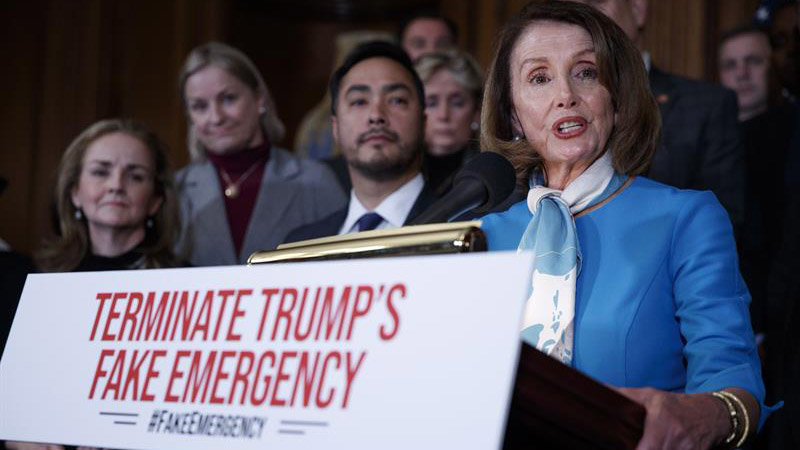 Pelosi insistió en que la declaración de emergencia nacional, que permite a Trump reunir fondos para el muro sin el visto bueno del Congreso, supone una afrenta para la Constitución de EEUU y, por ello, instó a los republicanos a proteger la “separación” de poderes protegida por la Carta Magna.