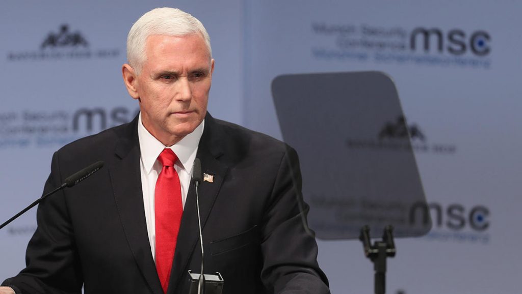 El vicepresidente de EEUU, Mike Pence, urgió este sábado a la Unión Europea (UE) a alinearse con Washington tanto en Irán como en Venezuela, en donde instó al bloque a reconocer a Juan Guaidó como “único presidente legítimo”.