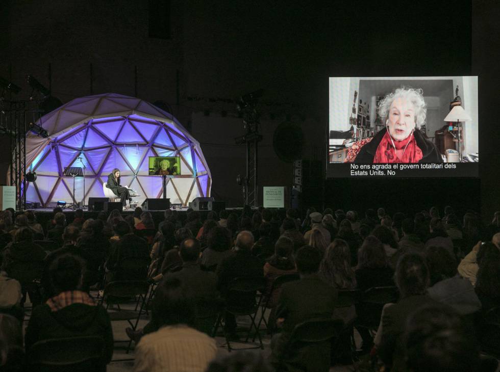 La cita va arrencar amb l’itinerari Futurs, i ningú com l’autora de la reeixida distopia El conte de la serventa per traçar-lo. “La gent sempre havia pensat que aquesta trama era fantasiosa, llunyana, però amb l’arribada de Trump es va començar a percebre com un reality show”, va contextualitzar Margaret Atwood des del Canadà, via streaming, i va admetre que “la por, el caos i la falta de recursos materials per a molta gent són el motor d’aquests temps convulsos; el planeta està amenaçat com en la meva obra”. Però, tot i que “podria ser el comiat de l’ésser humà si no es canvia d’actitud”, es va mostrar esperançada amb “la igualtat que obtindran les dones, l’ecologisme, i els joves de vint anys, que mostren noves maneres d’organitzar-se”.