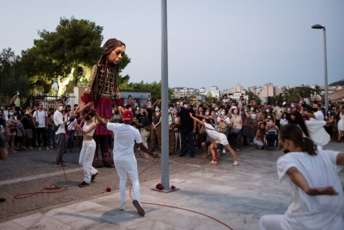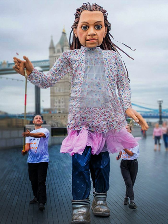 Se llama La Pequeña Amal (Little Amal) pero es una marioneta gigante que mide casi 3.5 metros de altura. Su ropa es colorida pero su rostro, de ojos oscuros, es serio. Diseñada por la compañía sudafricana Handspring Puppet Company, Amal representa a una niña siria de nueve años, que emprendió en julio un viaje de 8 mil kilómetros desde Turquía, con destino a Inglaterra.