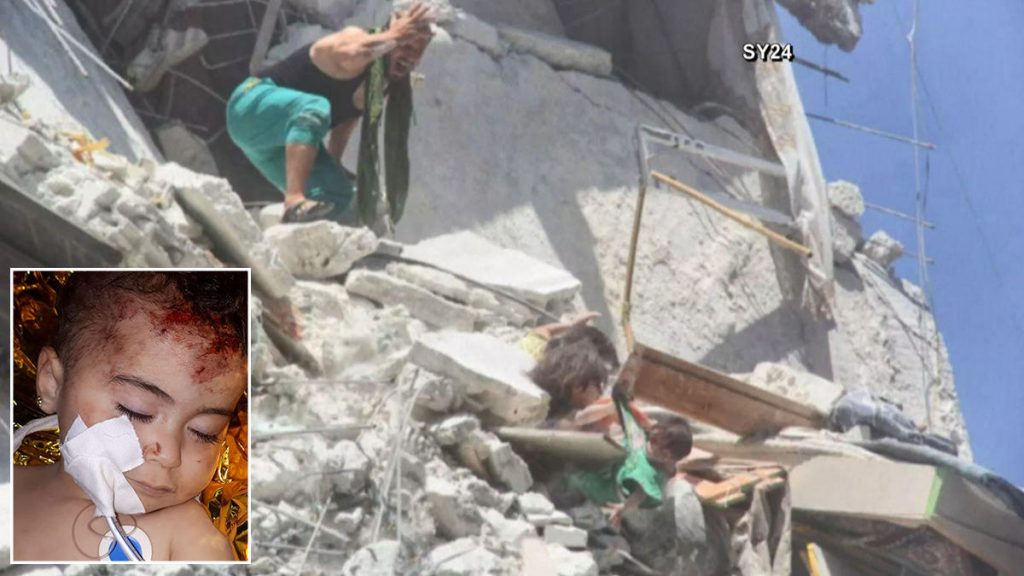 La foto de la pequeña identificada como Riham Al-Abdallah, capta el horrendo momento cuando una casa se derrumba tras un ataque aéreo y Riham, de cinco años, queda atrapada bajo los escombros. En su desespero, el padre de las pequeñas se agarra su cabeza mientras mira desde arriba los sucesos.