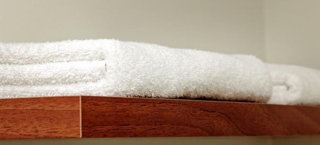 Esta es una simple adición a su baño que marca una gran diferencia. Un estante encima de la puerta es el lugar perfecto para guardar artículos de tocador o toallas adicionales para que estén accesibles, pero fuera del camino. Use tornillos para madera y un par de soportes de estante de madera para colgar los soportes, y luego atornille el estante en ellos.