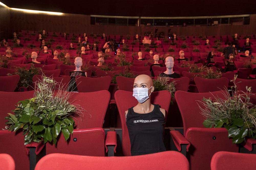 En la fachada de los Teatros del Canal siguen colgados algunos de los carteles de los espectáculos que deberían haberse estrenado en los meses de abril y mayo. Recuerdan el teatro que pudo haber sido en este tiempo en el que Madrid ha permanecido acorralado y también el teatro que está empeñado en volver a ser. “No hemos querido quitarlos para dar esperanza al espectador y a los artistas, porque vamos a intentar que todas esas propuestas vuelvan al escenario a lo largo del año”, comenta su directora artística, Blanca Li.Con las nuevas normas de seguridad ya preparadas a lo largo de los 35.000 metros cuadrados del complejo, la coreógrafa se niega a que su público acceda a las butacas con la frialdad de quien pasa el control de seguridad de un aeropuerto. Por eso, ha preparado varias sorpresas para los 227 espectadores (la tercera parte del aforo de la Sala Roja) que van a poder asistir en la tarde del miércoles al primer espectáculo del ciclo Madrid en Danza, que inaugura la programación post-coronavirus en el que es uno de los primeros teatros en España en regresar a la actividad presencial.Cuando el público entre en la sala se encontrará con cientos de maniquíes vestidos con camisetas del teatro y rodeados de plantas. Además de llenar el vacío impuesto por el virus, ayudarán a que los asistentes cumplan en todo momento la distancia de seguridad dentro del recinto. “Había que crear un poco de amor, para dar calidez y alegría a esos controles de seguridad. La sensación de regresar al teatro no puede ser traumática. Este gesto, además, nos ayuda a recordar que ir al cine o al teatro no es más peligroso que estar en una terraza, subir a un autobús o viajar en avión”, comenta Blanca Li mientras se instalan los nuevos ocupantes del teatro.Para esta instalación artística que cumple las veces de dispositivo de seguridad la coreógrafa buscaba maniquíes de todo tipo, que reflejaran la mayor diversidad posible, así que investigó por Internet hasta dar con una empresa de alquiler que cumplía con sus expectativas. Este negocio lleva casi diez años recopilando un catálogo de más de 2.000 piezas para ofrecerlos a eventos privados, compañías de teatro y escaparates. “La idea era tener la oferta más amplia, para poder cubrir todas las necesidades”, cuenta su dueño en el teatro, mientas traslada algunas de las figuras que harán compañía a los espectadores del Canal. “Si es posible, los mantendremos durante todo el ciclo de Madrid en Danza”, avanza la directora artística del centro.Este guiño que el equipo de los Teatros del Canal ha querido dedicar al público sirve también de homenaje a la cultura y al teatro. “Las imágenes que hemos visto en redes sociales de los primeros espacios abiertos daban ganas de llorar. Pensar que, tanto los artistas como el público tenemos que volver a los escenarios de esa manera me hizo pensar que tenía que haber una forma de mostrar a los espectadores que el teatro sigue siendo un sitio para los sueños y la magia en el que olvidarse de una realidad que en los últimos tiempos ha sido tan dura”, explica Blanca Li en la Sala Roja.A pesar del aforo reducido y con todas las entradas vendidas para esta primera velada a cargo de la adaptación de Israel Galván de El amor brujo, la entrada al edificio se prolongará más de lo habitual, como medida de seguridad que se suma a las labores de desinfección que se llevaron a cabo antes de esta reapertura. Las nuevas normas sanitarias implantadas en los Teatros del Canal imponen una estricta separación de dos metros entre espectadores, marcada con decenas de carteles pegados al suelo. Se procederá además a la toma de temperatura a cada uno de ellos, con varias máquinas instaladas en la planta baja del edificio. Antes de encontrarse con los maniquíes, Blanca Li se reserva otros guiños con aquellos que vuelven a ocupar su espacio y se plantean instalar a una banda de música en directo frente a la pausada cola que va a formarse en el centro.Para quienes no puedan asistir en directo a Madrid en Danza, que también recibirá en los próximos días a artistas como Olga Pericet, Sara Calero y Olga Molina, el teatro ha configurado un servicio de emisión en ‘streaming’ de pago, que cuesta 5 euros por espectáculo y que puede verse dos horas después del inicio de la función, para evitar fallos con la emisión en directo, apuntan sus organizadores. También han dispuesto un bono de 15 euros para acceder a la emisión de los seis espectáculos programados en esta edición de Madrid en Danza, que ocupará el escenario del teatro hasta el 28 de junio.Tanto Li como la consejera de Cultura de la Comunidad de Madrid, Marta Rivera de la Cruz, consideran que los Teatros del Canal que gestiona el Gobierno regional debían ser los primeros en reabrir sus puertas para ”apoyar a los profesionales de la cultura” y servir de guía al resto de espacios públicos y privados de Madrid. A partir de esta experiencia piloto en este teatro dependiente de la Comunidad de Madrid, otros espacios públicos y privados podrán tomar nota para afrontar los retos que plantea la nueva normalidad.