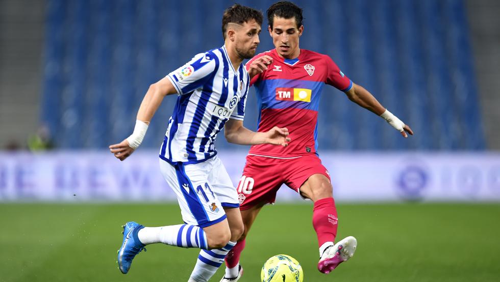 La tempranera expulsión de Raúl Guti, por una entrada muy peligrosa al jugador de la Real Sociedad Andoni Gorosabel, condicionó mucho la derrota del Elche en el Reale Arena (2-0) . En el minuto 11, el árbitro cántabro Cordero Vega, tras ser advertido por el VAR y visionar la jugada repetidas veces en el monitor de campo, enseñó la roja al mediocentro aragonés por un pisotón a Gorosabel. Pere Milla analizó la acción tras el encuentro: “La vimos en el marcador. Guti intenta controlar y le pisa, sí. ¿Es roja? A cámara lenta, son 20 partidos. Pero bueno, es fútbol. Quizás en el próximo partido será al revés”, dijo resignado a los micrófonos de Movistar LaLiga.